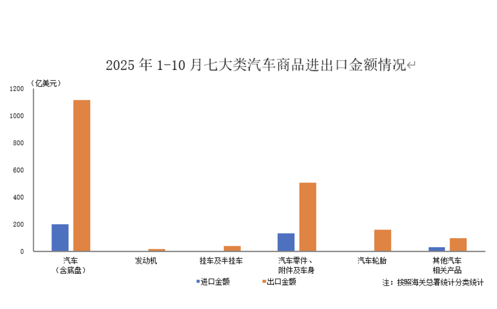 据中国汽车工业协会整理的海关总署数据显示,2025年10月,汽车商品进出口总额为253 1亿美元,环比增长1 7%,同比增长9 5%。其中进口金额36
