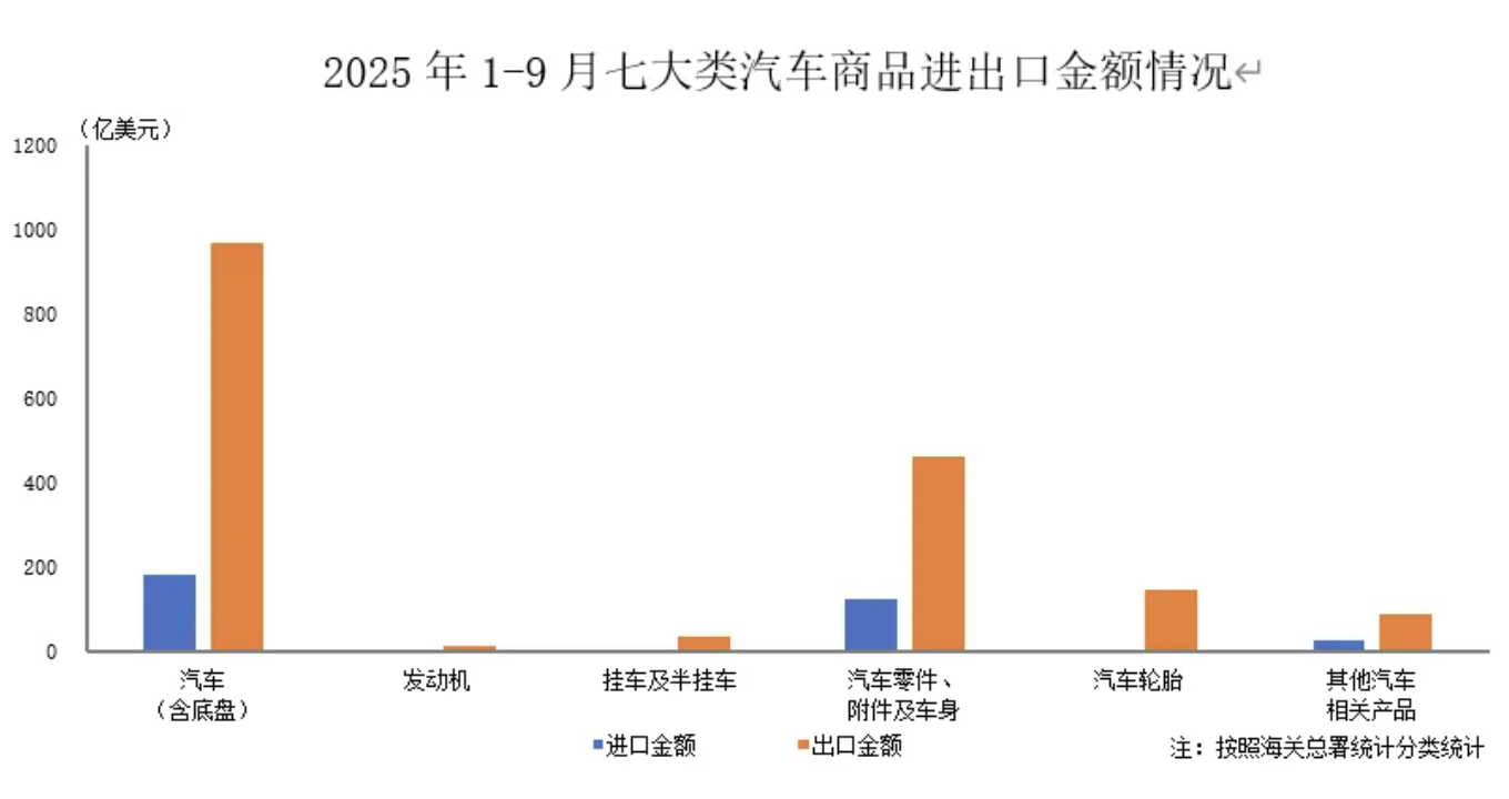 2025年1-9月,全国汽车商品累计进出口总额为2068.1亿美元,同比下降1.0%。其中进口金额342.6亿美元,同比下降32.9%;出口金额1725.5亿美元,同比增长9.3%。(来源:中汽协会行业信息部)