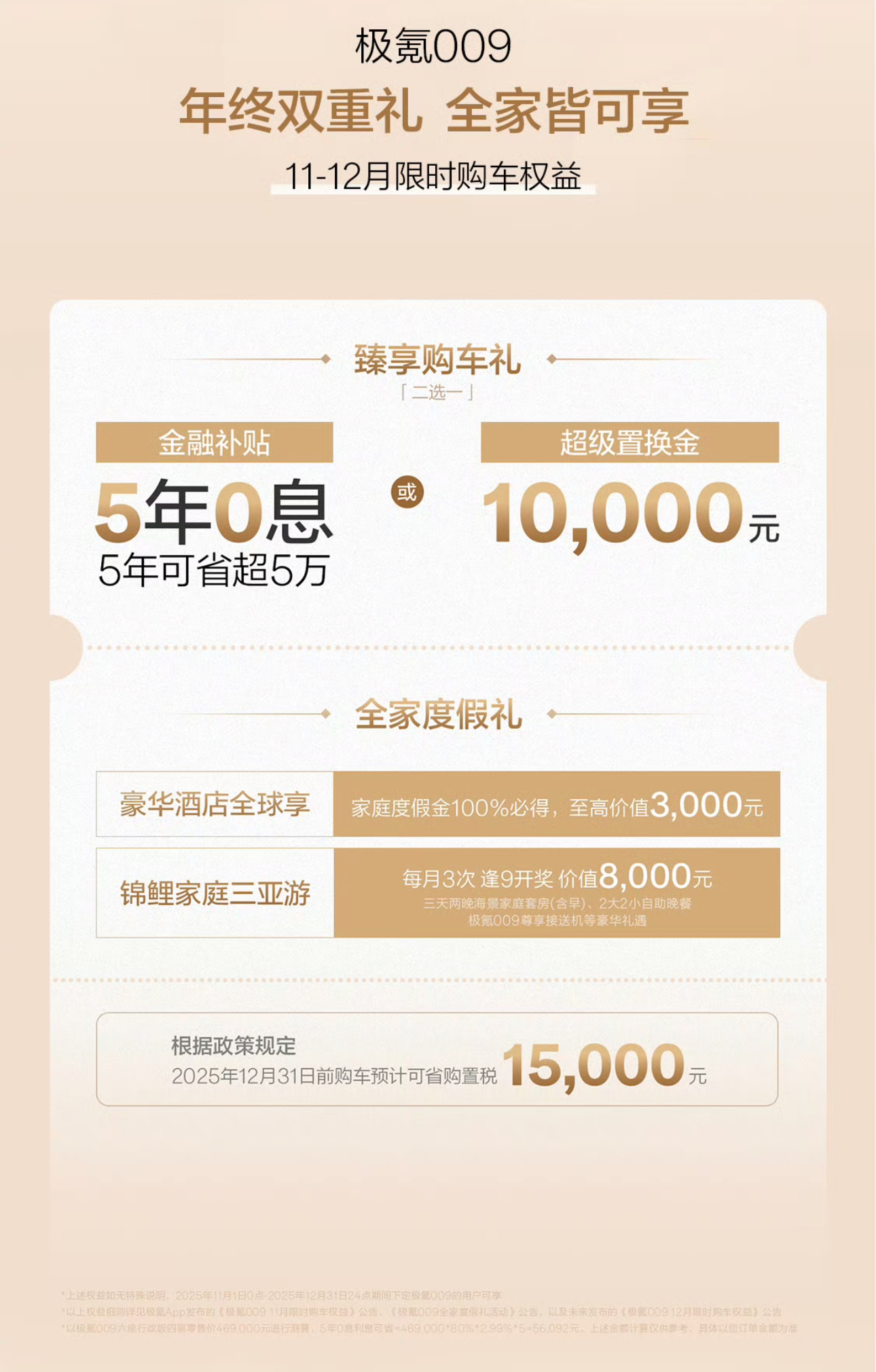 在市场策略层面,极氪科技精准把握消费需求,推出跨年购置税补贴方案,最高补贴1.5万元,搭配极氪009的5年0息、置换金等专属权益,有效激发市场潜力。