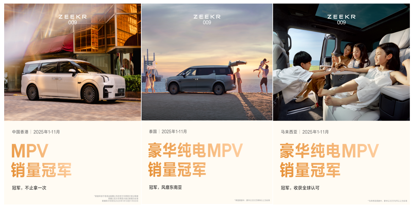 首先是产品势能的进一步释放,极氪的产品矩阵已形成“叫好又叫座”的良性格局。超豪华旗舰SUV极氪9X以53.8万元的均价,稳居50万以上大型SUV销量榜首,80%用户来自传统豪华车主;极氪009不仅蝉联中国40万以上MPV销冠,更拿下中国香港MPV销冠及泰国、马来西亚豪华纯电MPV销冠,荣获“中大型纯电动MPV”产品质量推荐第一和产品综合口碑第一双项荣誉。此外,焕新001、焕新7X等主力车型上市后也持续领跑细分市场,让极氪稳固占据国内高端豪华新能源市场头部阵营。